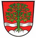 "Ein roter Schild zeigt unten einen Dreiberg, der mittlere ist erhöht und auf ihm steht eine Buche. In der Mitte des Schildes fließt quer durch das Schild ein Bach, dargestellt durch einen Wellenbalken. Baum und Laub tragen die natürlichen Farben."